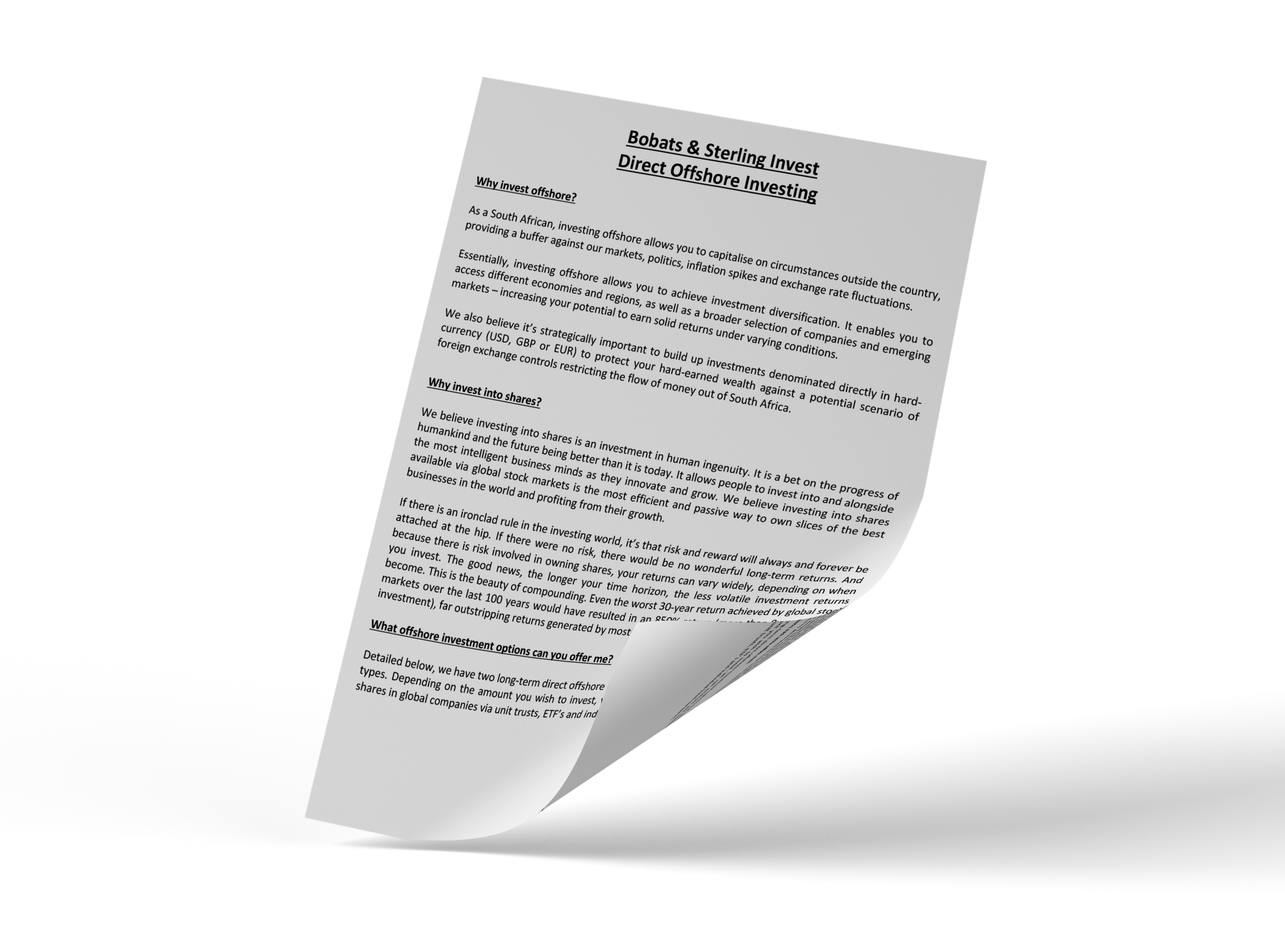 We go through these options together so you can make an informed decision about the solution that you can earnestly buy into for the long-term. This becomes your Bobats Wealth Blueprint ®